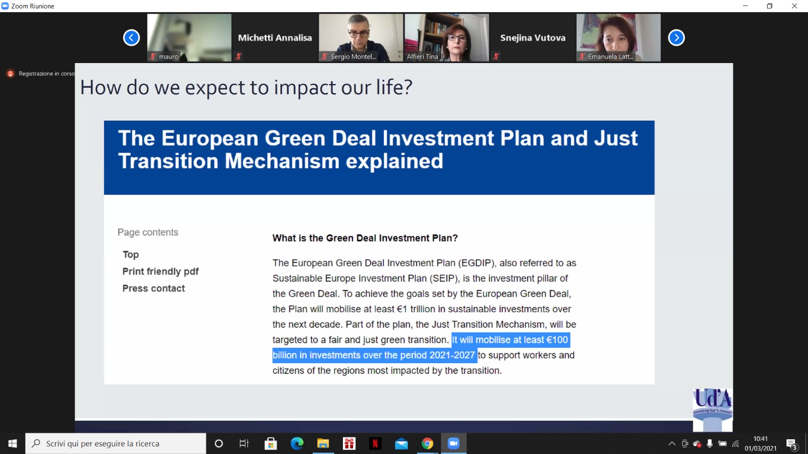 Infine, nel corso del webinar si è approfondito il “European Green Deal Investment Plan” i cui obiettivi sono: