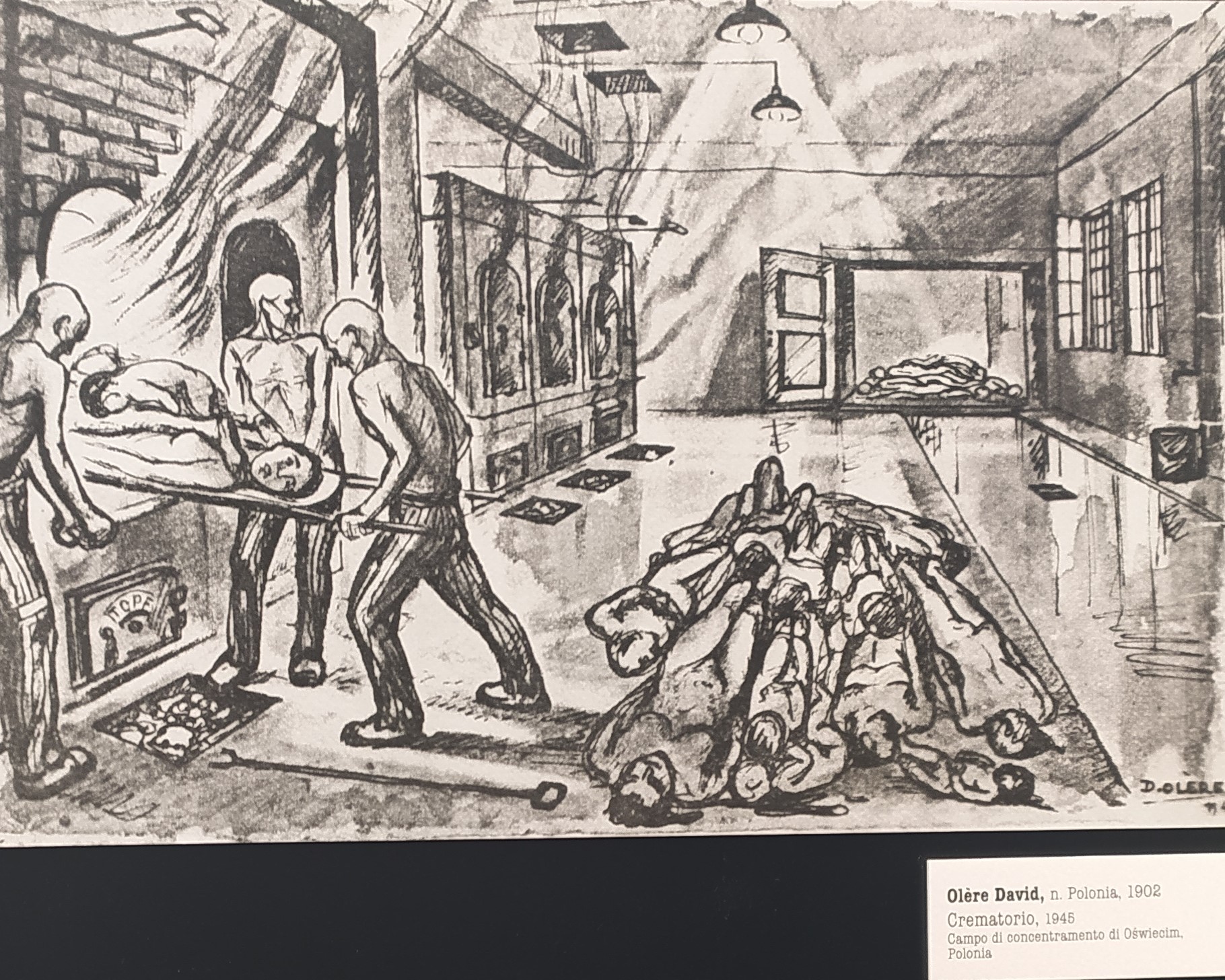 Hannah Arendt (1906-1975), filosofa e studiosa di teoria della politica, nell’opera “Le origini del Totalitarismo”, in alcune pagine descrive il clima di terrore nei campi di concentramento e di sterminio; chi veniva internato in un campo era sottoposto da parte dei carnefici a un dominio assoluto, trasformando l’uomo in un oggetto, spogliandolo di tutto, soprattutto della sua dignità. Ed è questo che emerge da questi disegni, non possono non entrare nell’ anima e trasmettere inquietudine, dolore, trionfo del male e quel tragico destino dei giusti e degli innocenti. Come rimanere indifferenti di fronte a tutto ciò? Indubbiamente se ci limitiamo a ricordare e celebrare il Giorno della Memoria senza superare le barriere dell’individualismo e dell’egoismo sarà molto difficile arrivare alla costruzione di una società giusta e pacifica.